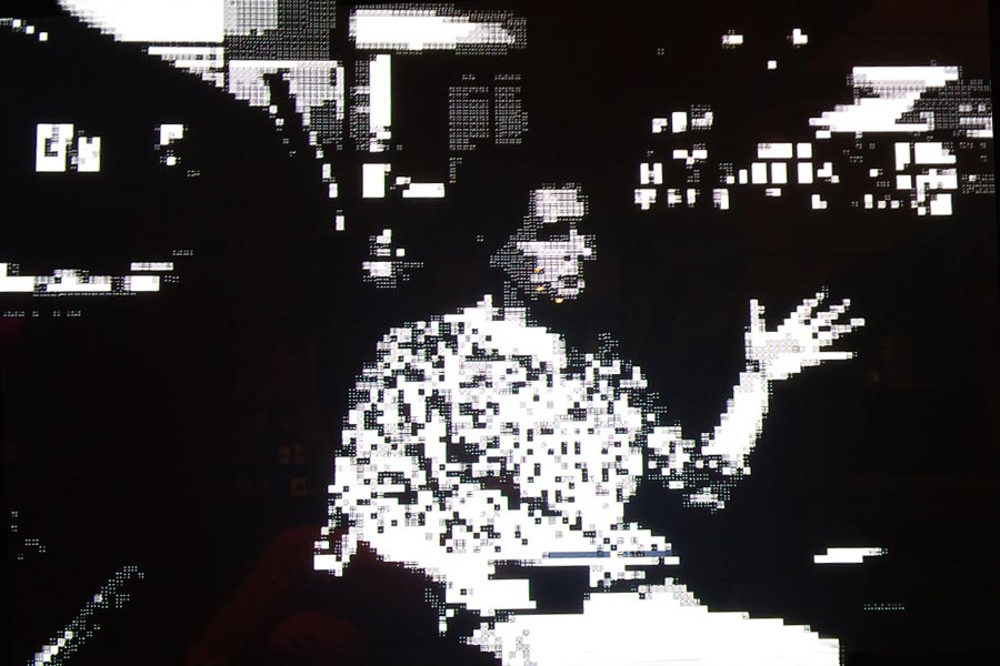 Le noir et le blanc sont deux valeurs de lumière extrêmes. Entre les deux, toutes les couleurs se jouent. La relation au public ouvre la voie aux perceptions possibles. Le public voit des rythmes et des pulsations entre les pixels brisés. En explosant la saturation blanche des pixels, on peut voir la richesse de la sensation, à travers un voyage dans les composantes primaires de l'absolu. Les illusions fusionnent. Les couleurs se mélangent. Les yeux se brouillent.