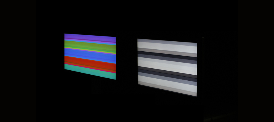 Black and white are two extreme light values. between the two every color is played. the relationship to the viewer opens the way to the possible perceptions. the audience sees rhythms and pulsations between the broken pixels. by exploding the white saturation of pixels can be seen the richness of the sensation, through a trip in the primary components of the absolute. the illusions fuse. the colors blend. the eyes blur.