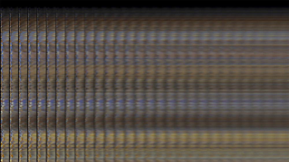 Obraz staje się patchworkiem pikseli, kolorową mozaiką w trakcie tworzenia, jako długa sekwencja średnich kolorów, ze wspólnym słowem kluczowym ślepej na kolory wyszukiwarki. Piksele podążają powoli, owijając się raz za razem.