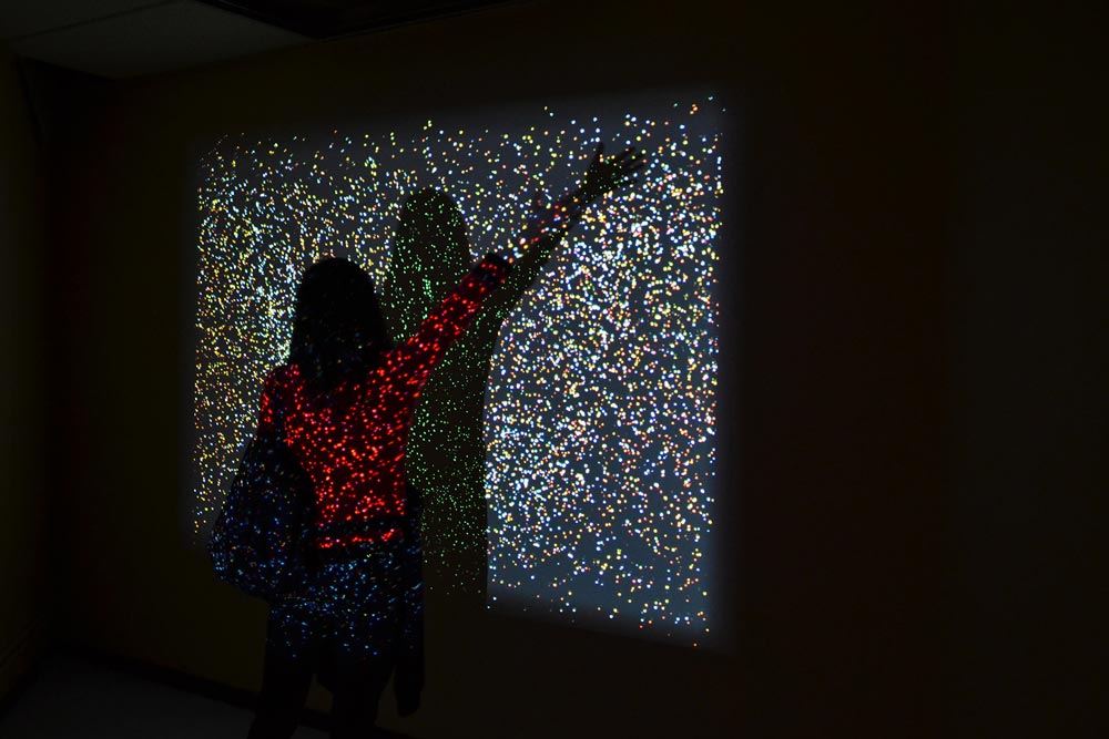 Interaktywność ma na celu przekroczenie prostej interakcji z maszyną. Kiedy osoba zamyka oczy, uruchamia kolorową sekwencję świetlną, która sprawia, że odczuwa, a nie faktycznie widzi obraz. Jej powieki są ekranem dla bezramkowego i bezwymiarowego obrazu.