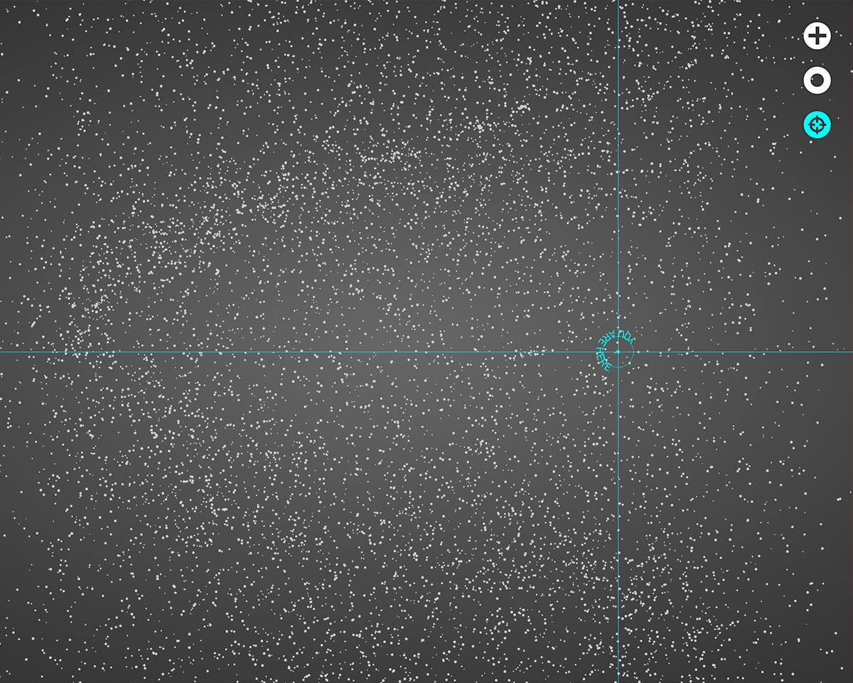 Dosłownie uważana za sposób na zbliżenie się do gwiazd, instalacja zaprasza do kontemplacji danych astronomicznych w ich najczystszej postaci. Zachęceni i zachęcone do zbliżenia się do ekranu, widzowie i widzki pozwalają systemowi przełączać się między realistycznym przedstawieniem gwiazd a ich własnym odbiciem, zrekonstruowanym przez piksele gwieździstego nieba. Całkowicie stworzony na podstawie rzeczywistych danych widocznych z Ziemi gwiazd, ten projekt zawiera ogromną ilość danych, które są zazwyczaj niedostępne.